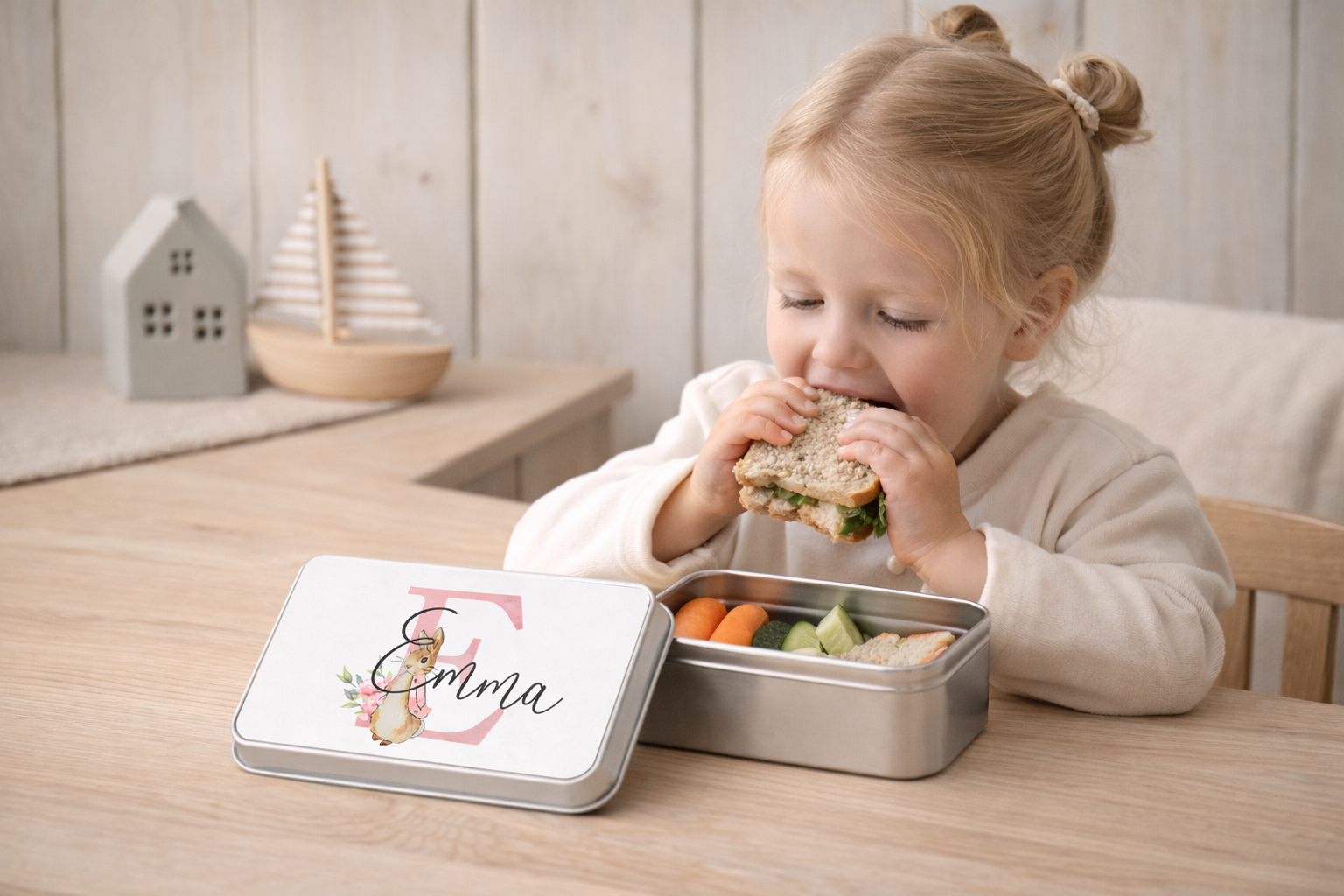 Drikkedunk med navn (Peter kanin - lyserødt bogstav)