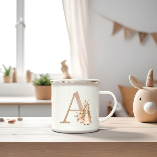 Kop med Bogstav / Kop med Initial - Peter kanin (Beige bogstav)