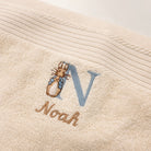 Håndklæde med navn (Bogstav Peter Kanin - Blå)