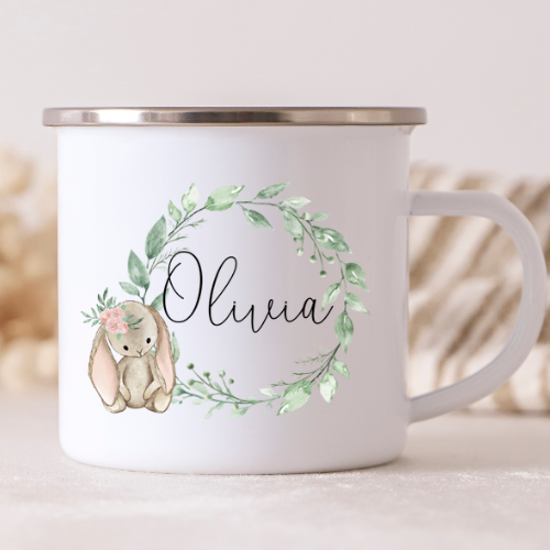 En charmerende kop med en sød kaninillustration og dit eget navn skaber den perfekte personlige gave.