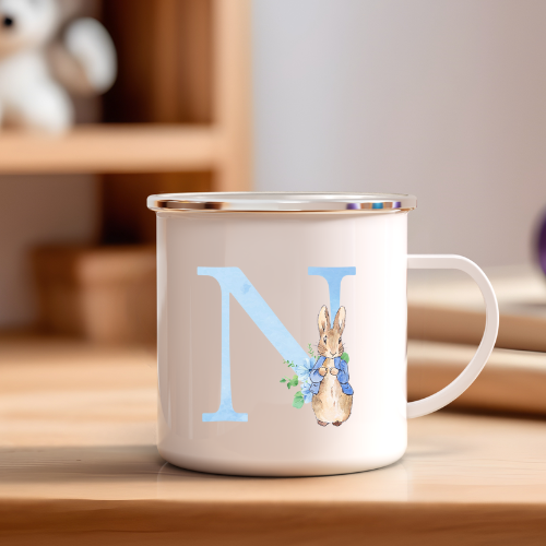 Kop med Bogstav / Kop med Initial - Peter kanin (Blå bogstav)