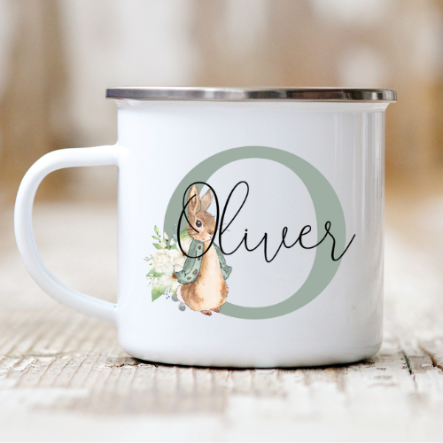 Kop med navn / Krus med navn - Peter kanin (Grønt bogstav)