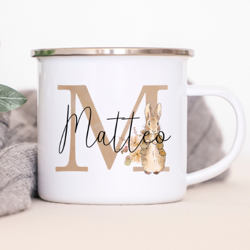 Kop med navn - Peter kanin (Beige / Brunt bogstav)