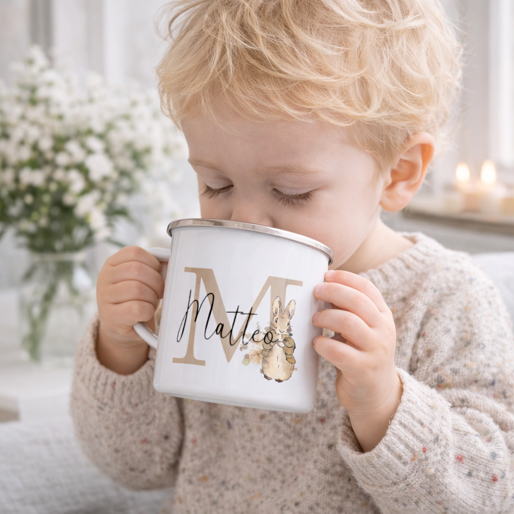 Forkæl de kære små, med deres helt egen bogstav kop med navn på. Det personlige design motiv er trykket i hånden, så hver en kop er helt unik. Kopperne er et kæmpe hit hos de små.