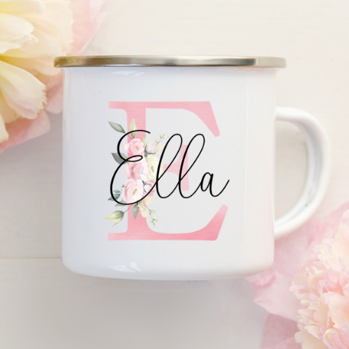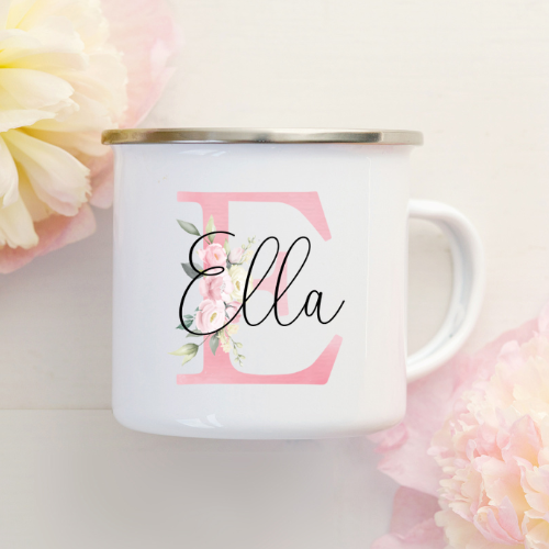 Kop med navn / Krus med navn (Blomster bogstav)