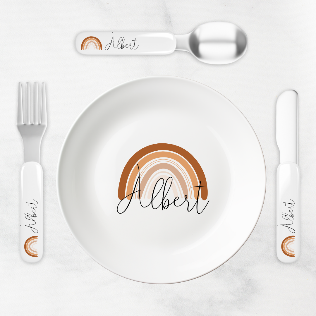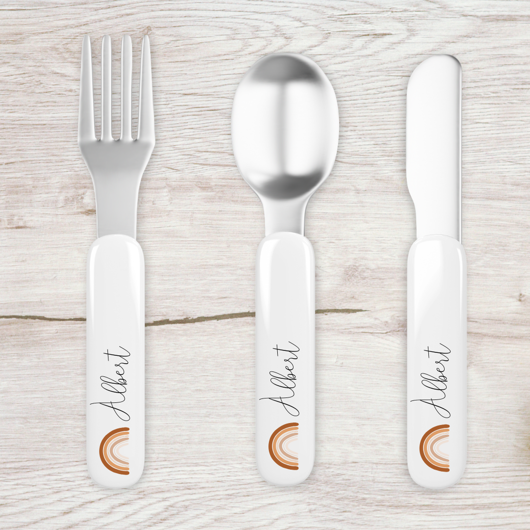 NYHED! Bestik sæt med navn / personligt bestik - Beige Regnbue