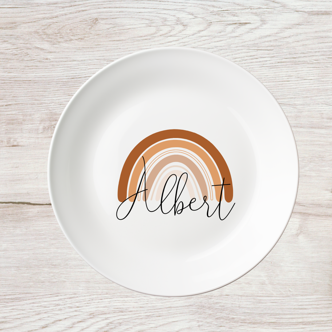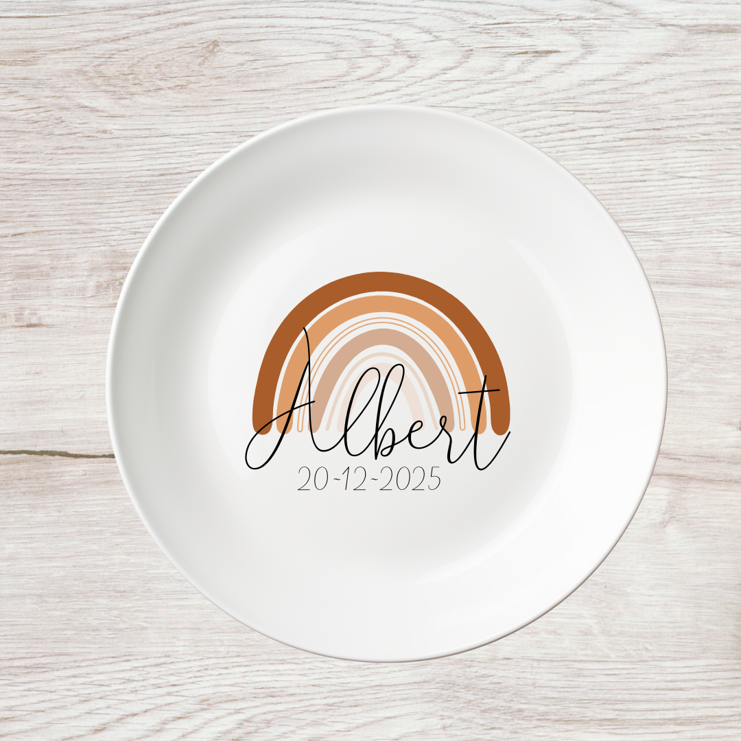 NYHED! Tallerken med navn / personlig tallerken - Beige Regnbue