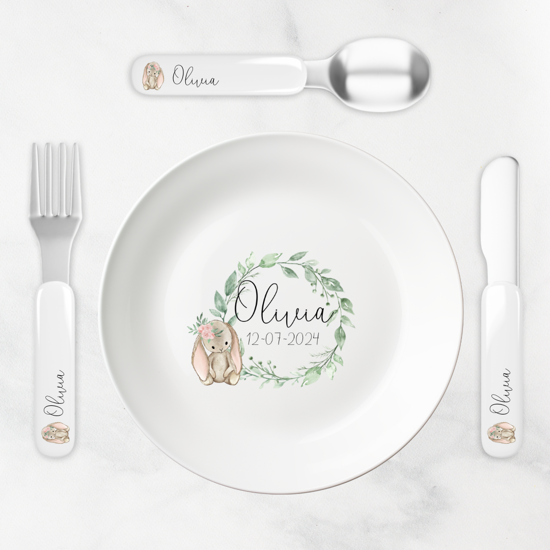 Gør måltiderne til en magisk oplevelse med en personlig tallerken fra My Little Nordic. Sød kanin tallerken med eget navn.