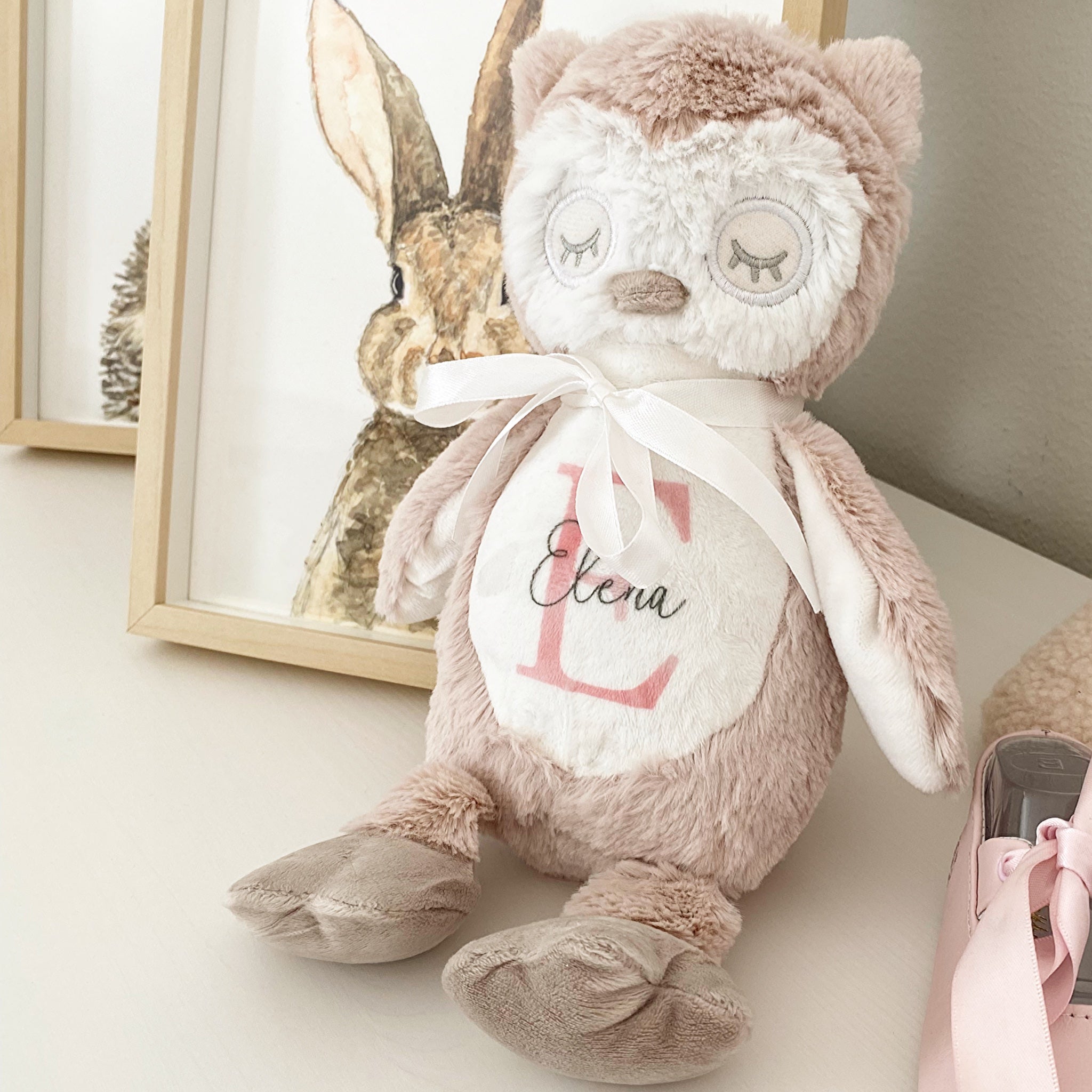 Personlig Baby bamse (Lyserødt Bogstav) / Ugle