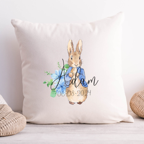 Vores søde og personlig Peter Kanin pude med navn er en fin gave, der vil pynte ethvert børneværelse. Denne charmerende pude bringer Peter Kanin ind i dit hjem med en personlig touch og tilfører en ekstra sød og legende atmosfære.