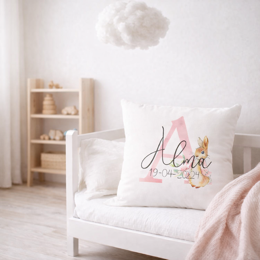 Vores søde og personlig Peter Kanin pude med navn er en fin gave, der vil pynte ethvert børneværelse. Denne charmerende pude bringer Peter Kanin ind i dit hjem med en personlig touch og tilfører en ekstra sød og legende atmosfære.
