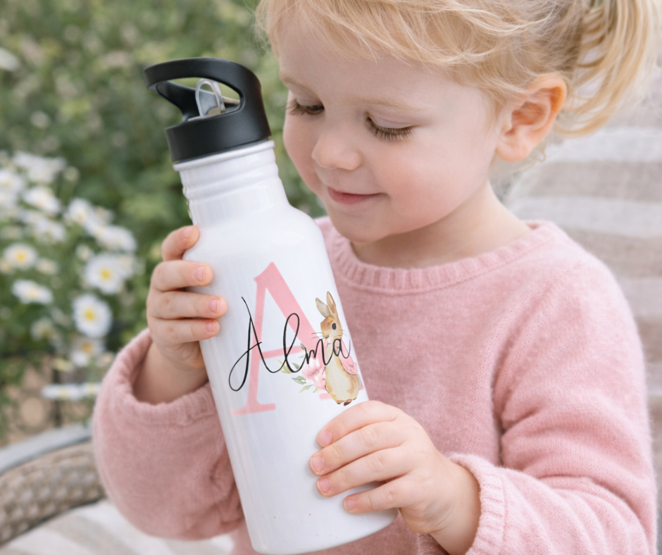 Drikkedunk med navn (Peter kanin - lyserødt bogstav)