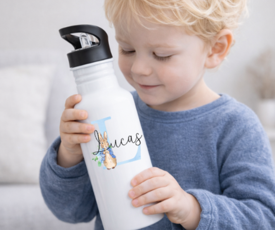 Drikkedunk med navn (Peter kanin - Blåt bogstav)