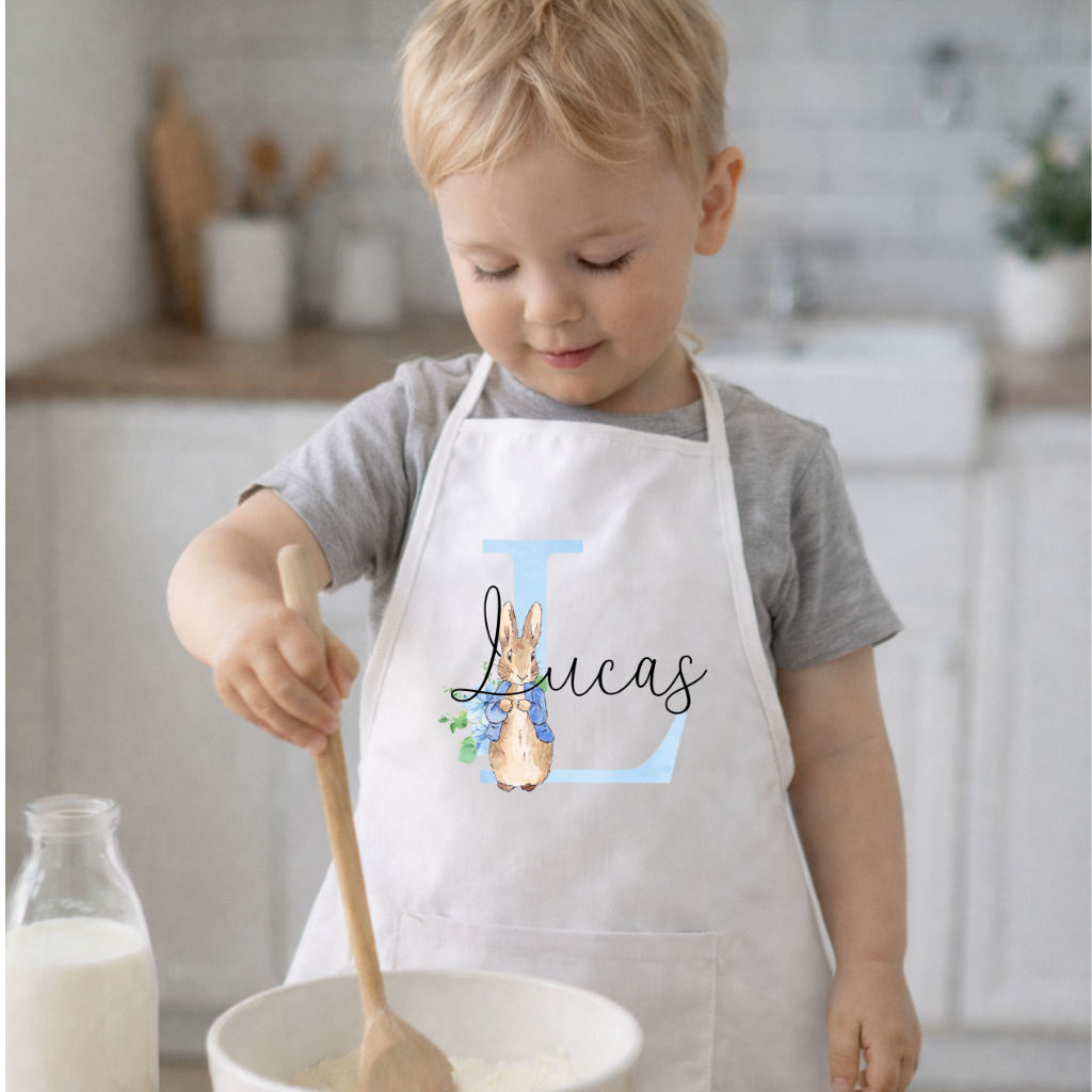 Håndklæde med navn (Bogstav Peter Kanin - Blå)